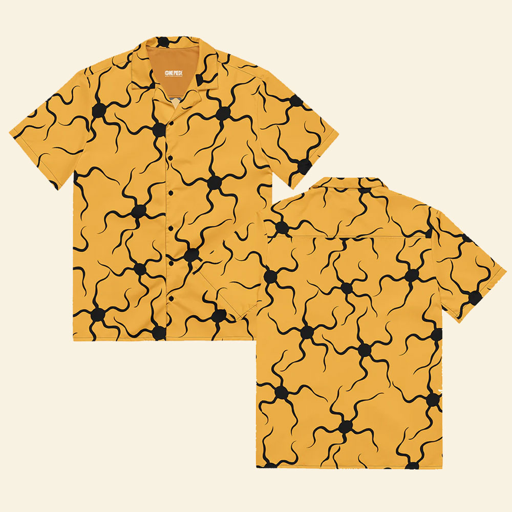 Arlong One Piece Anime Hawaiian Button Up ShirtMaterial: Medium-heavy fabric (8.0 oz/yd² (271.25 g/m²)). 50% cotton, 50% polyester.