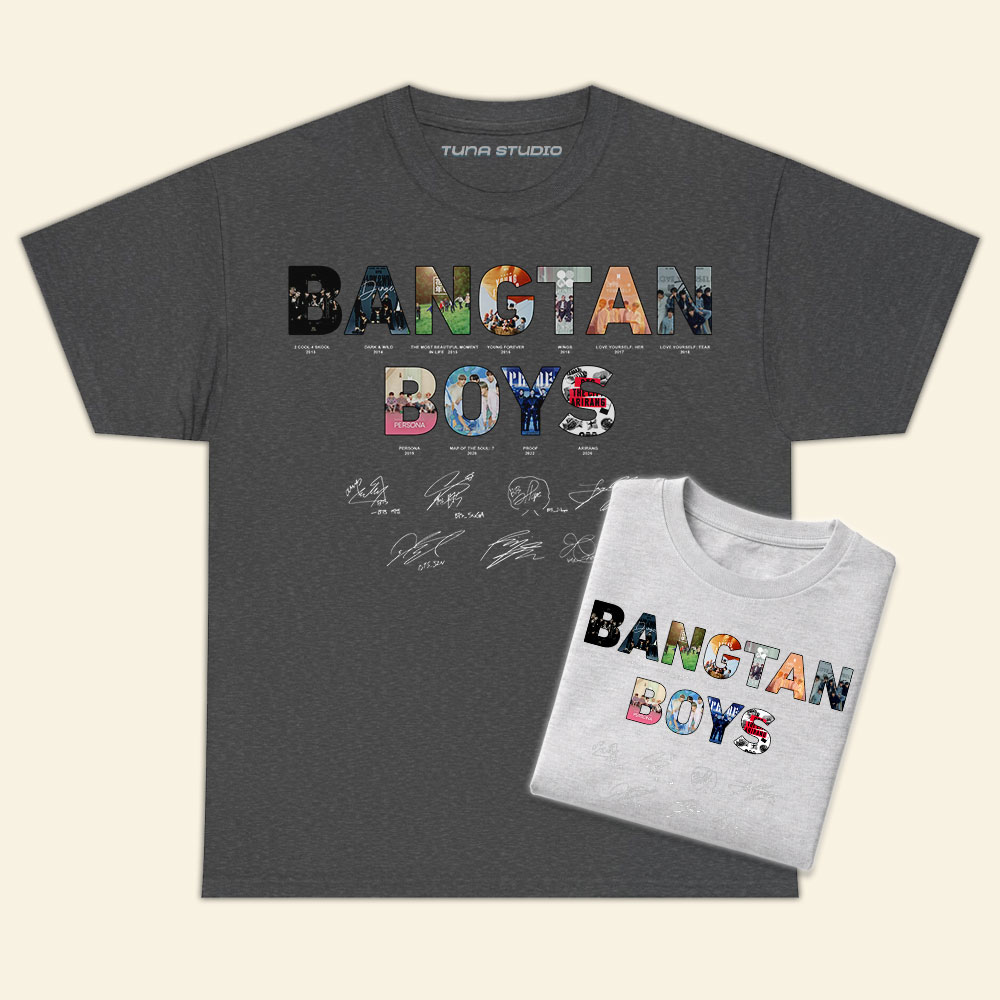 Bangtan Boys Album 2026 World Tour ShirtMaterial: Medium-heavy fabric (8.0 oz/yd² (271.25 g/m²)). 50% cotton, 50% polyester.