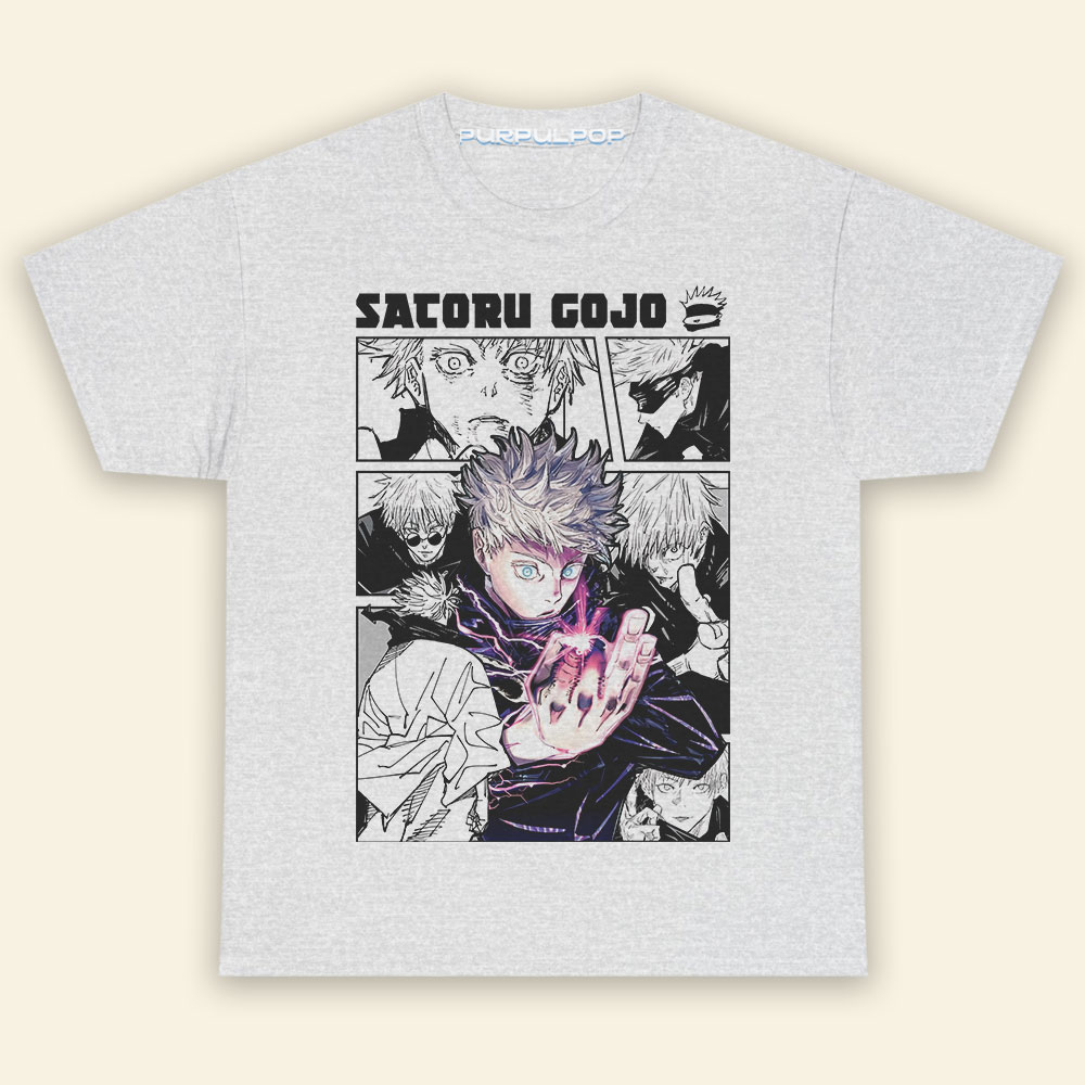 Gojo Satoru Jujutsu Kaisen ShirtMaterial: Medium-heavy fabric (8.0 oz/yd² (271.25 g/m²)). 50% cotton, 50% polyester.