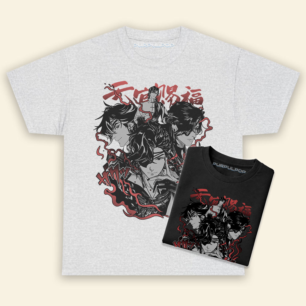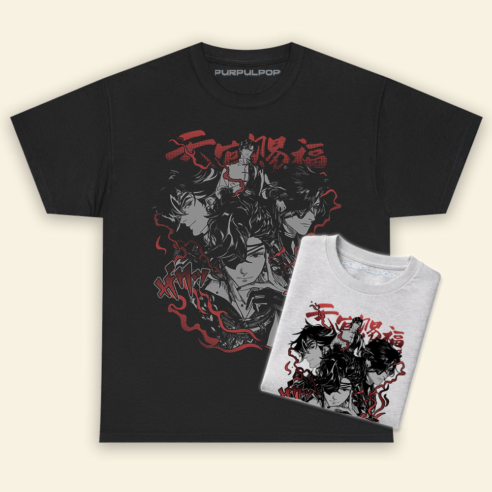 Hua Cheng Art Tian Guan Ci Fu ShirtMaterial: Medium-heavy fabric (8.0 oz/yd² (271.25 g/m²)). 50% cotton, 50% polyester.