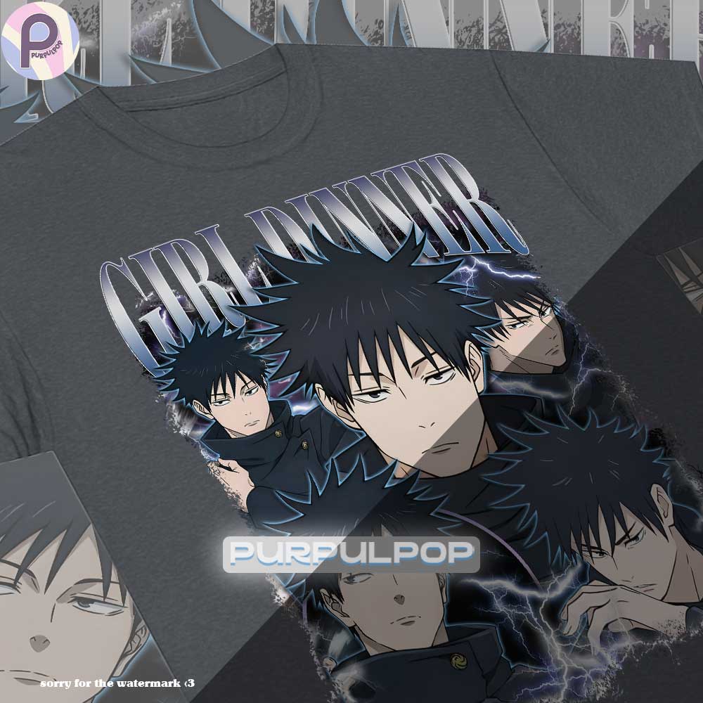 Megumi Jujutsu Kaisen Girl Dinner ShirtMaterial: Medium-heavy fabric (8.0 oz/yd² (271.25 g/m²)). 50% cotton, 50% polyester.