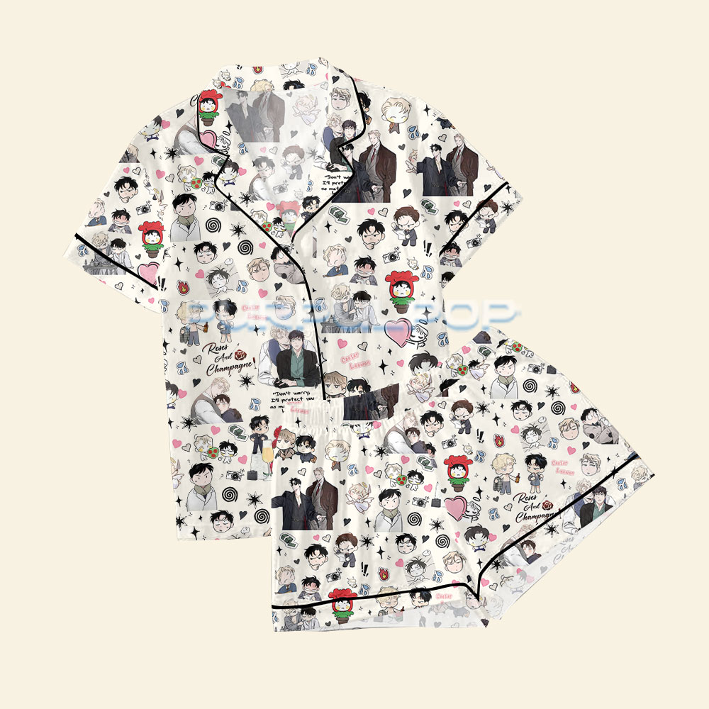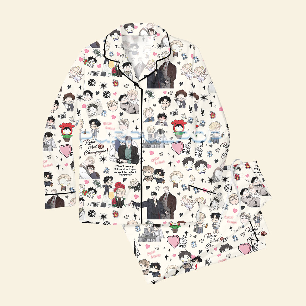 Rose and Champagne Pajama SetMaterial: Medium-heavy fabric (8.0 oz/yd² (271.25 g/m²)). 50% cotton, 50% polyester.