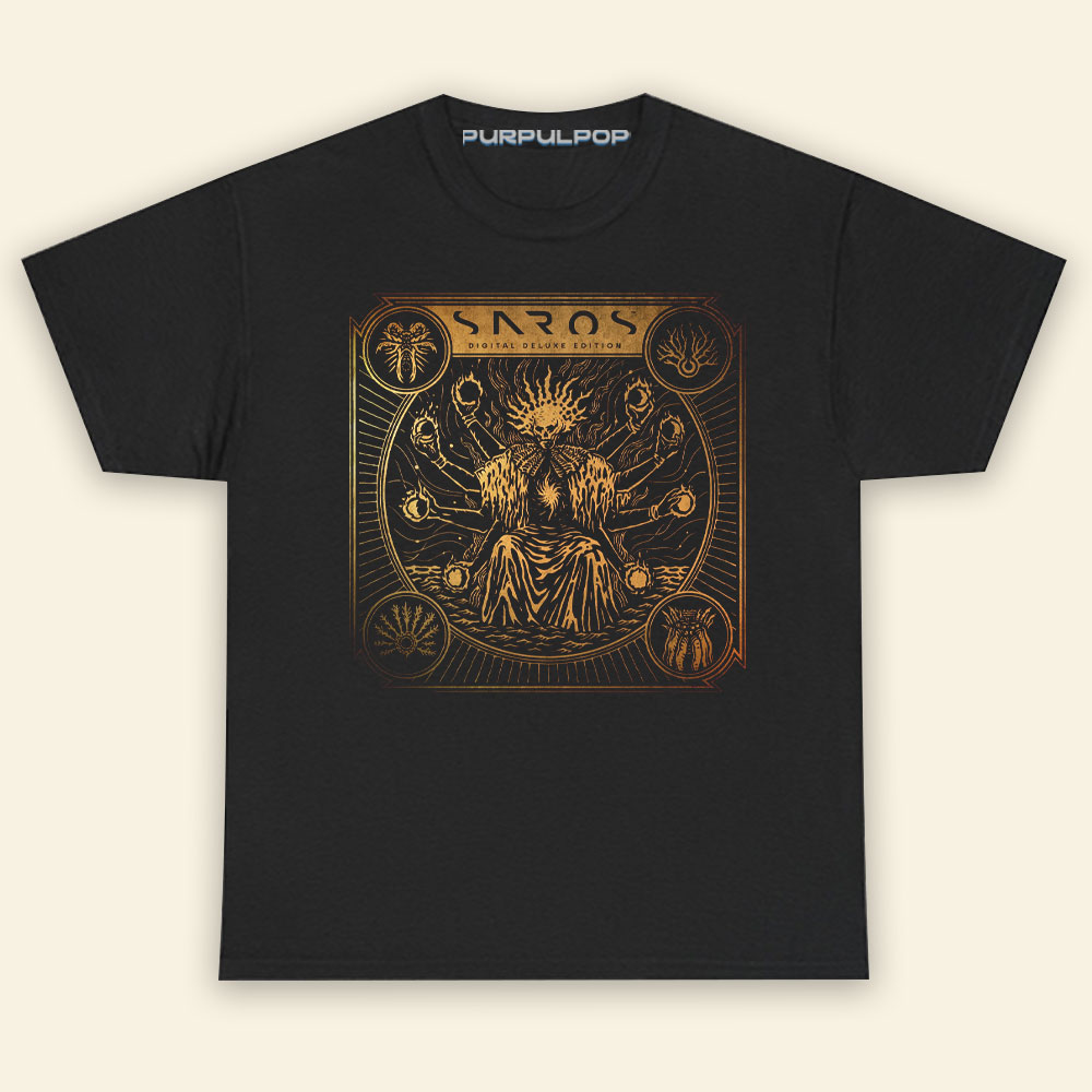 Saros Carcosa Arjun Devraj Game ShirtMaterial: Medium-heavy fabric (8.0 oz/yd² (271.25 g/m²)). 50% cotton, 50% polyester.